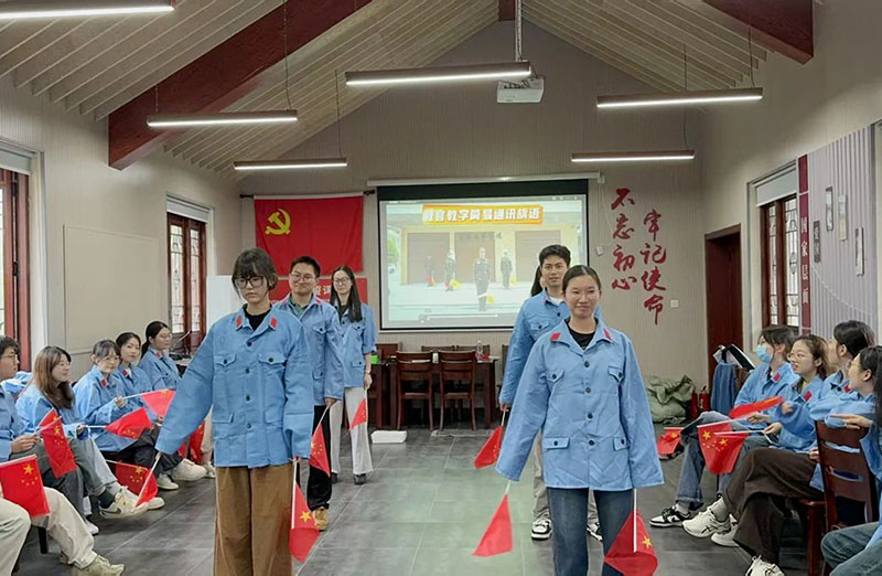 活动现场,团员青年们穿上红军军装,化身“革命青年”,沿着先辈们曾经走过的长征路线,沉浸式体验那段波澜壮阔的历史岁月。学习旗语传递姿势、筹军粮过草地、穿越火线、肩并肩作战跑等沉浸式实景体验,身临其境感受革命先辈们面临的重重困难与坚定信念,不仅加深了团员青年对革命历史的认知,更激发了他们的爱国情怀和使命担当,让红色精神在新时代焕发新的活力。活动最后,全体团员重温入团誓词,进一步牢记当代青年人的责任担当。