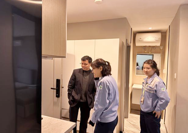恳谈会结束后,参会企业代表实地参观了职工家园3号楼的房间、样板房及相关配套设施,近距离感受家园的新变化、新提升。